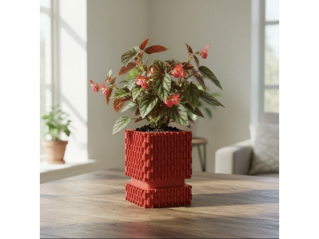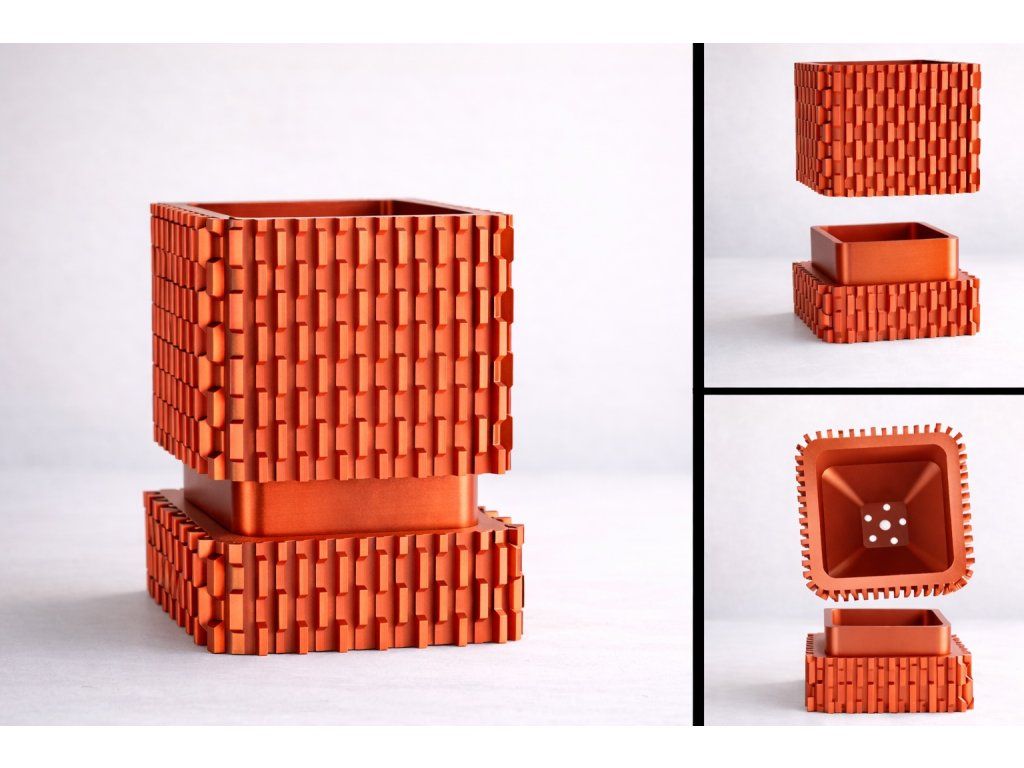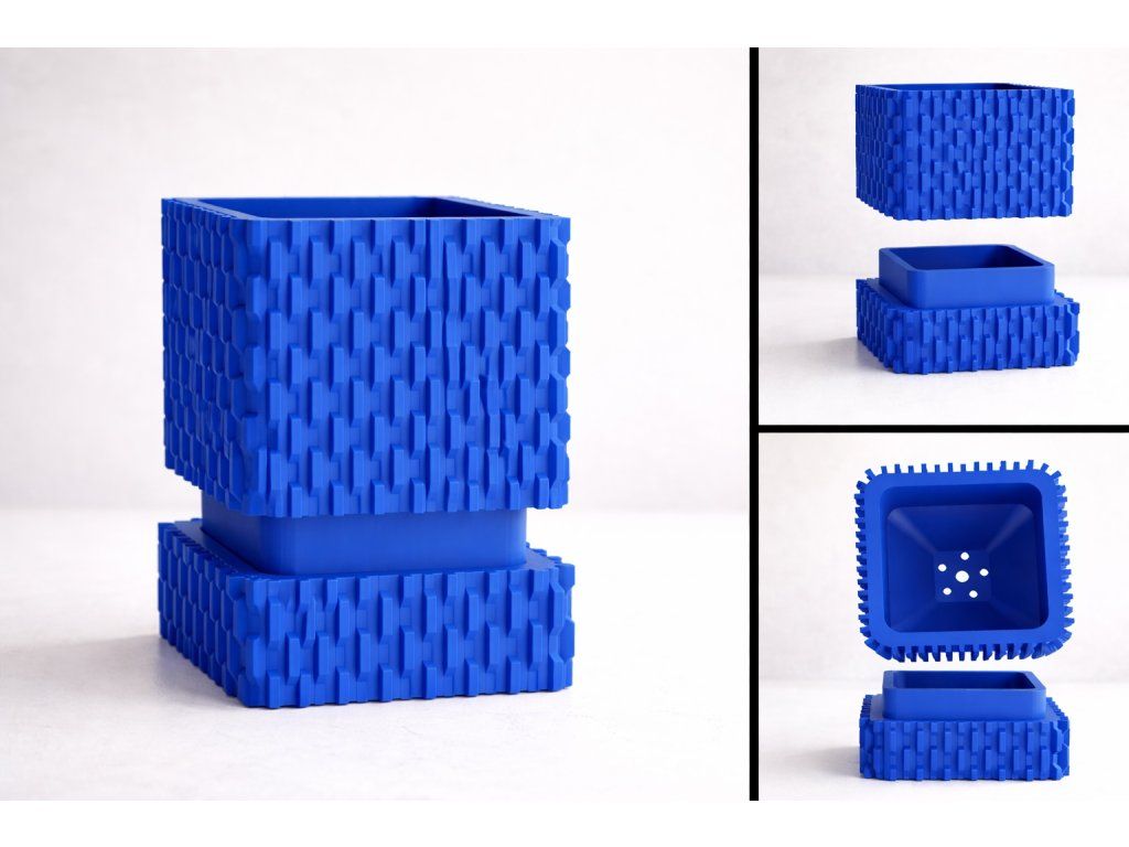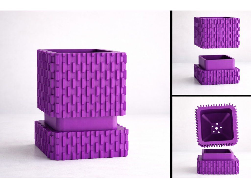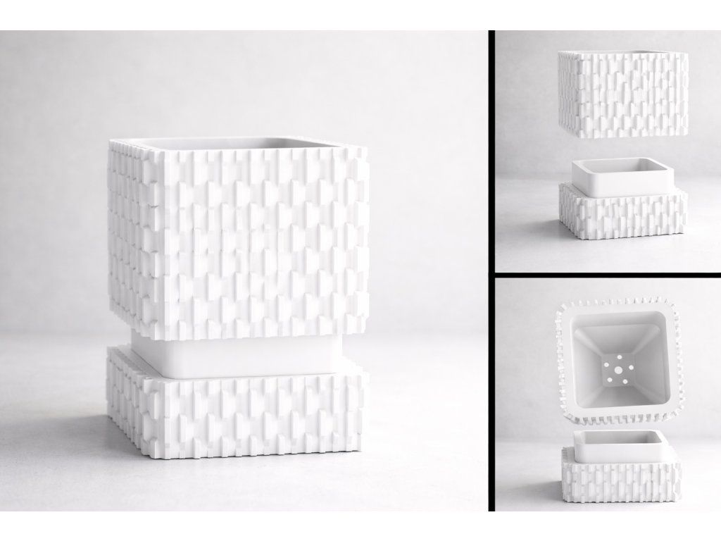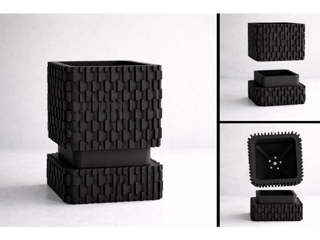 Kvetináč Aurea zaujme svojou architektonickou siluetou a pravidelným reliéfnym vzorom, ktorý vytvára hru svetla a tieňa. Ide o dizajnový 3D kvetináč vyrobený technológiou 3D tlače z PLA bioplastu – udržateľného materiálu z obnoviteľných zdrojov.